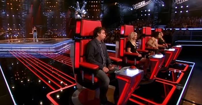Med en gang hun begynner å synge, trykker to av dommerne på knappen, og de andre to bare et øyeblikk etter.