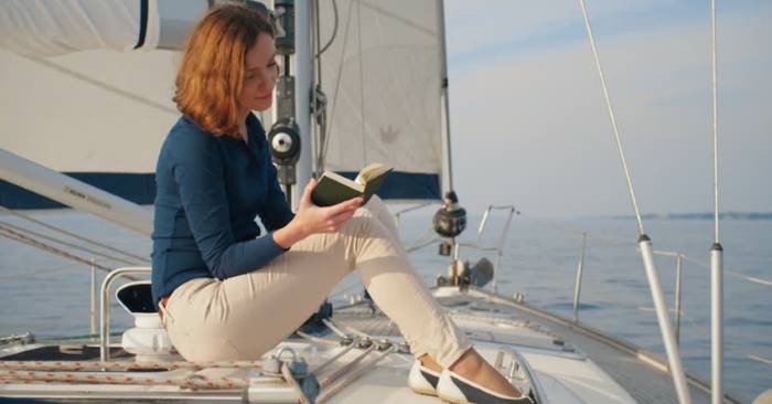 Kona var lei av å bli forstyrret av familien hele tiden, så hun tok båten, seilte langt ut på sjøen, kastet anker og satte seg til å lese boken ferdig mens hun nøt freden der ute.