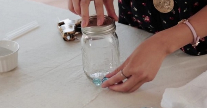Det er enkelt å lage, og det kan brukes både innendørs og utendørs, for varme sommernetter eller regnfulle dager – lokket holder LED lyset tørt og trygt. Du kan lage en hel haug med vakre glass og sette dem opp på langs en sti i hagen eller inne i hele korridoren.