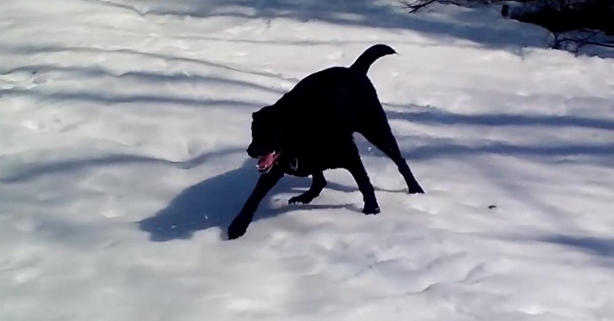 Rafi er en svart Labrador som elske snø over det aller meste. Da han oppdaget denne isbelagte bakken var han ikke mulig å stoppe: Full fart fremover!