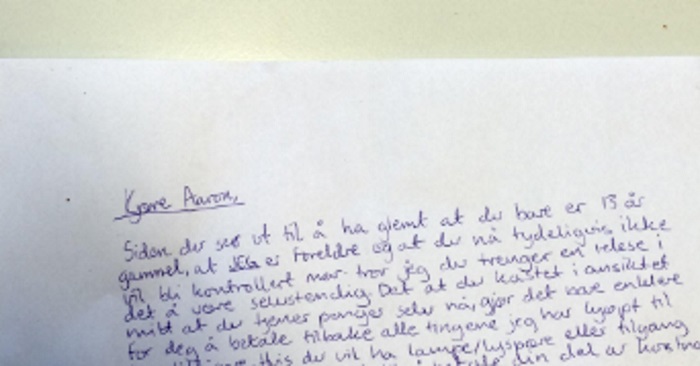 «Til alle mennesker som stirrer på ham fordi han nynner for seg selv – la han nynne. I tankene hans synger han den fineste sangen i verden. Til alle mødre som trekker barna sine bort fra ham – dere lager fremtidens mobbere. Barn bryr seg ikke om andre er annerledes hvis du bare lar de leke sammen. Til kvinnen som kalte han slem på supermarkedet – bare prøv å sett seg selv i hans posisjon: En overstimulering av farger og lyder. Du hadde nok grått du også, hvis du ikke kunne uttrykke deg når alt blir for mye.