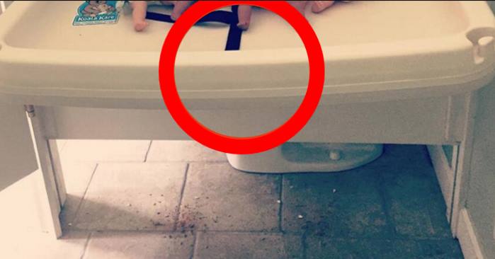 I dag byttet jeg Samuels bleie på stellebordet på et offentlig toalett. Da jeg la ham på stellebordet, skrek han. Jeg trodde det var fordi han var sliten, kald eller bare gretten, så jeg ga ham en klem for å roe ham ned. Men det viste seg at noen idioter synes det var morsomt å legge tegnestifter på stellebordet. Min stakkars baby ble presset på de spisse stiftene, og fordi han ikke er gammel nok til å fortelle meg hva som gjorde vondt, ser han nå ut som en nålepute med 5 hull. «Sint» er ikke i nærheten av å beskrive hvordan jeg føler meg. Det er trist at dette må sies, men dette er en advarsel: Sjekk stellebordet!»