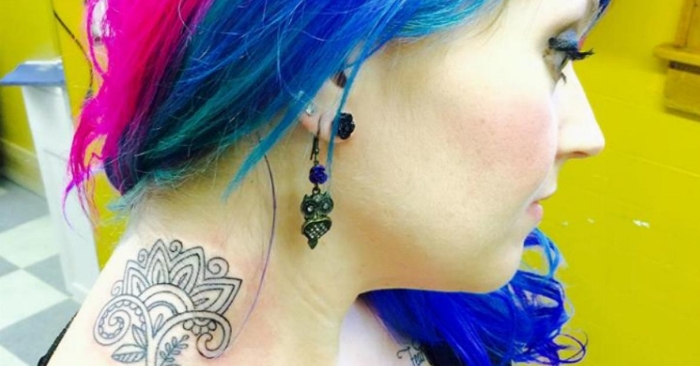 Kvinnen ble åpenbart sjokkert over svarte. Hvorfor? Marys hår er farget i alle mulige farger og hun har synlige tatoveringer og piercinger.