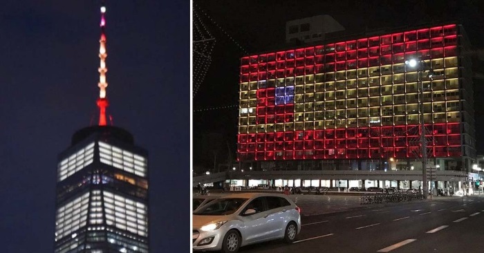 En annen bygning som brukes til å hedre ofrene, er rådhuset i Tel Aviv, Israel – også det er opplyst i det spanske flaggets farger.