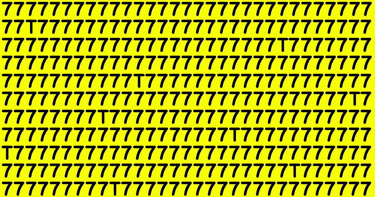 Det er et gult bakgrunnsbilde med mange 7-tall. Men, på en rekke steder er det også noen T-er. Fordi tallet og bokstaven er så like, kan øynene gå i spinn!