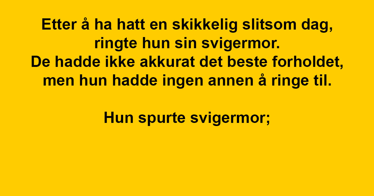 Etter å ha hatt en skikkelig slitsom dag, ringte hun sin svigermor. De hadde ikke akkurat det beste forholdet, men hun hadde ingen annen å ringe til.