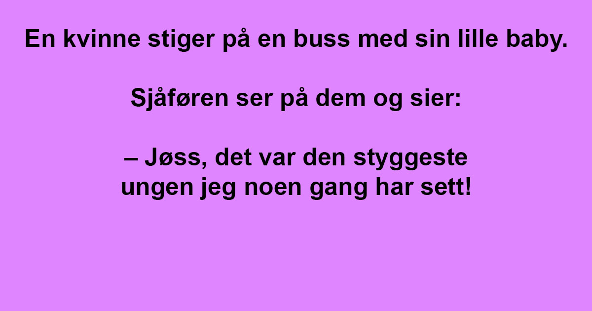 En kvinne stiger på en buss med sin lille baby. Sjåføren ser på dem og sier: